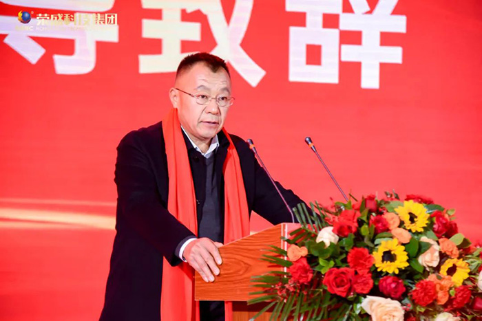 隨后,鄭州榮盛新威新材料有限公司總經理宋廣林發表致辭。他首先對集團公司成立十周年表示熱烈祝賀,他表示,在楚科奇董事長的正確領導下,榮盛新威在科技創新、產品質量、運營管理、生產等方面均取得了長足發展。正是有了四年前與榮盛科技集團的強強聯合,才有了今日在時代發展浪潮中努力拼搏、奮勇爭先的榮盛新威。他強調,在新的一年里,榮盛新威將以“踏平坎坷成大道、斗罷艱險又出發”的豪氣,真抓實干、堅定前行,進一步做大做強,為集團高質量發展做出更大貢獻。