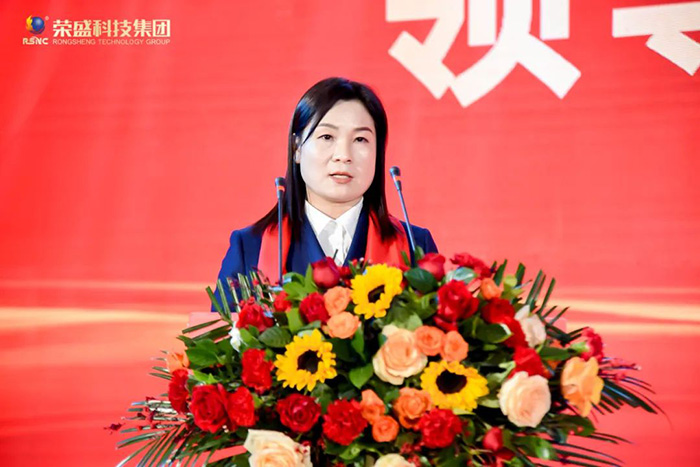 接著,河南榮盛科技集團分公司總經理周惠娟發表致辭。她首先對集團多年來給予分公司的大力支持表示感謝。她指出,在新的一年里,分公司將以楚科奇董事長的戰略規劃為導向,認真落實集團的戰略部署,加強營銷建設,引進人才,提升企業技術和創新能力。她強調,分公司要堅持問題導向,切實找差距,補短板、強弱項,夯基礎;堅持目標導向,把坐標抬高,與優者“對標”、與強者“比拼”、與快者“賽跑”,實現爭位,進一步為集團高質量發展做出更大貢獻。